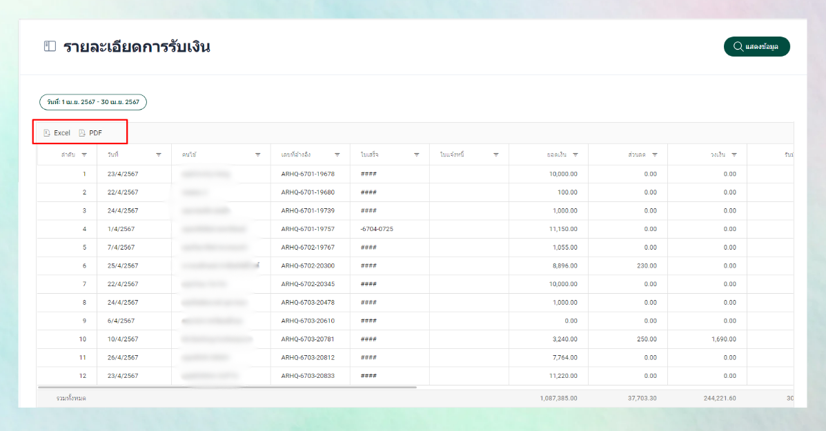 จำนวนเงิน: ระบุจำนวนเงินที่ได้รับ