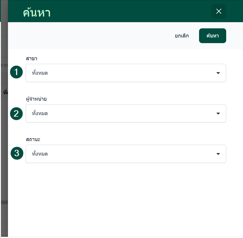 เมื่อกำหนดเงื่อนไขครบถ้วนแล้ว ผู้ใช้งานสามารถคลิก ค้นหา เพื่อแสดงผลรายงานตามข้อมูลที่เลือกไว้
