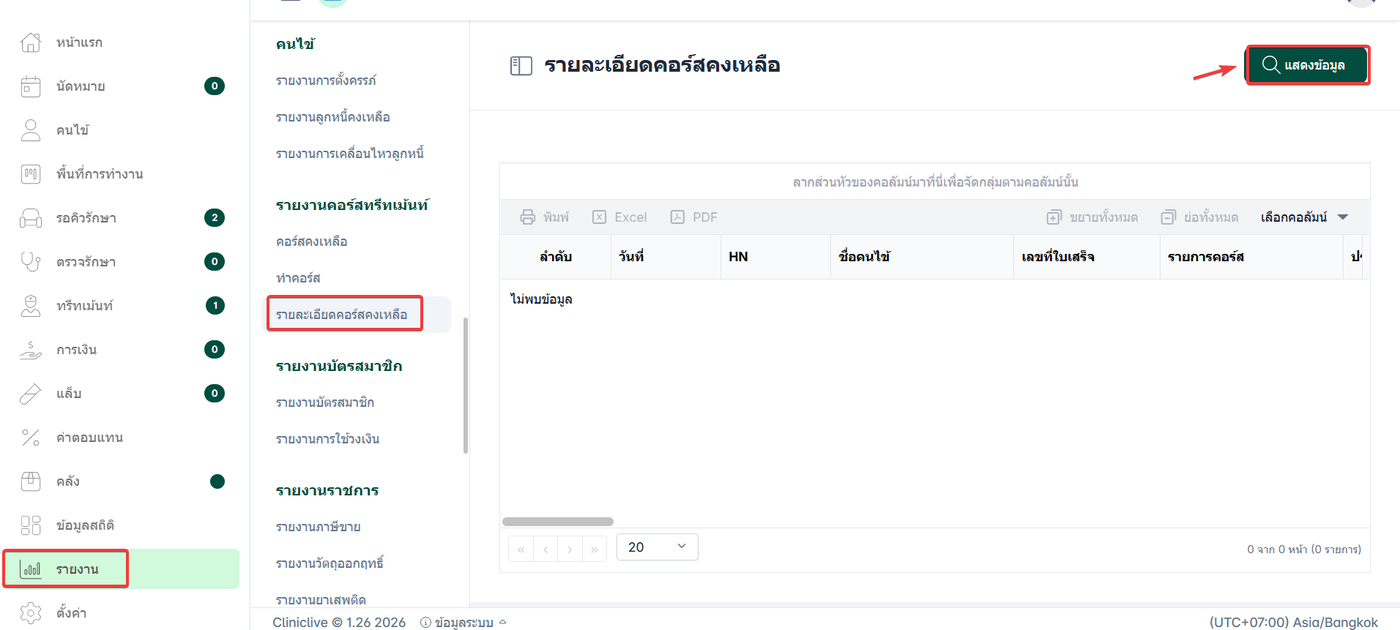 เลือกหัวข้อ รายงานคอร์สทรีทเม้นท์