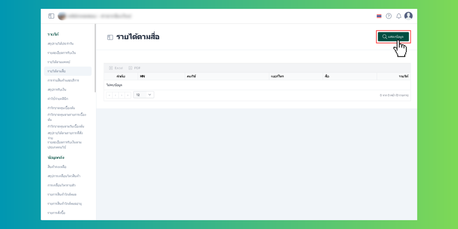 ระบบจะแสดงหน้ารายได้ตามสื่อ จากนั้นคลิกที่ แสดงข้อมูล