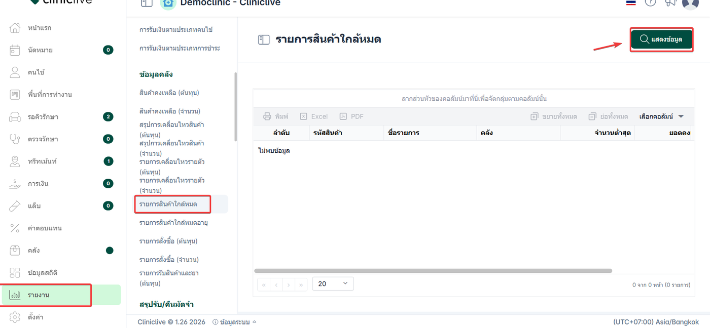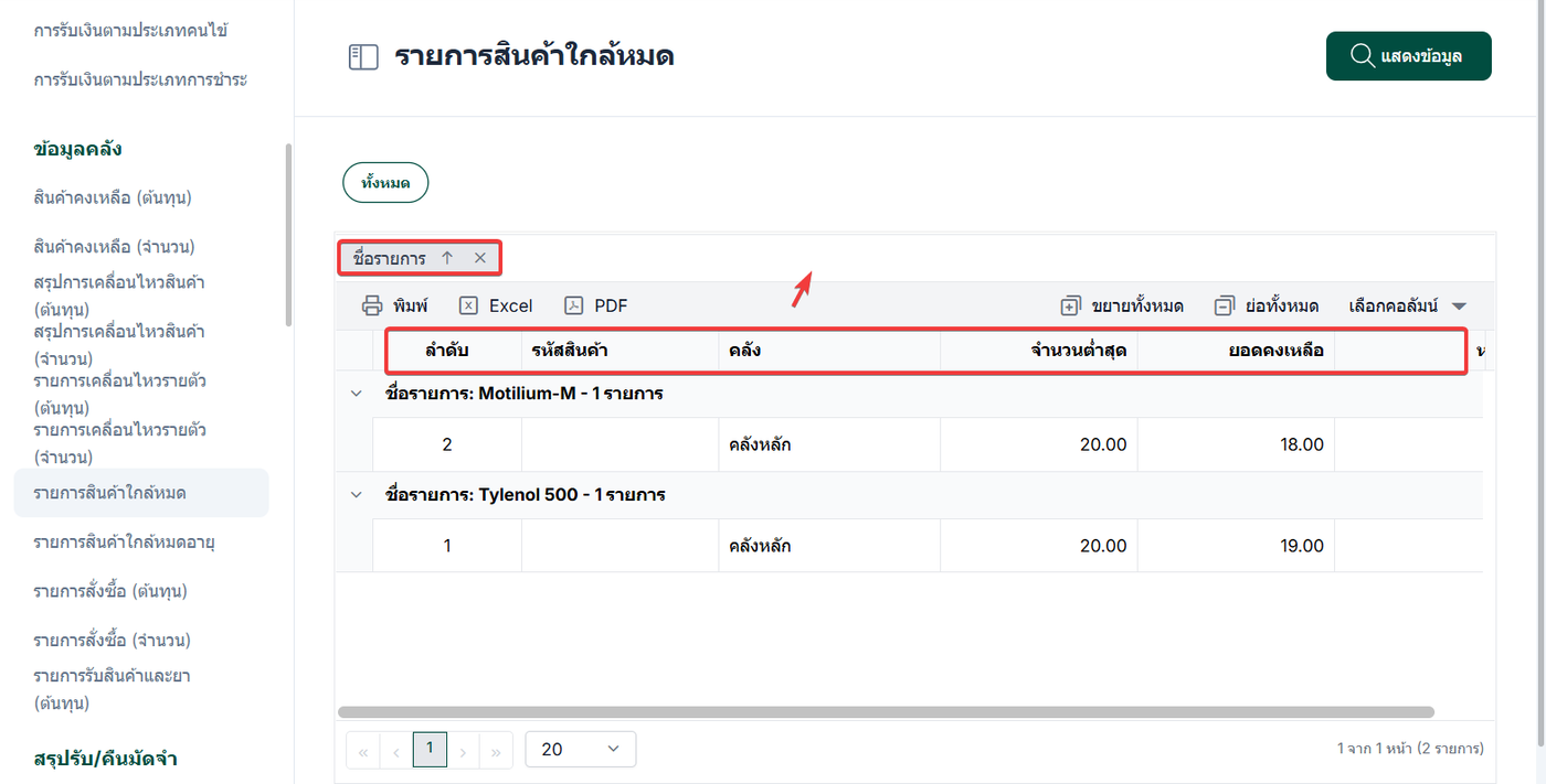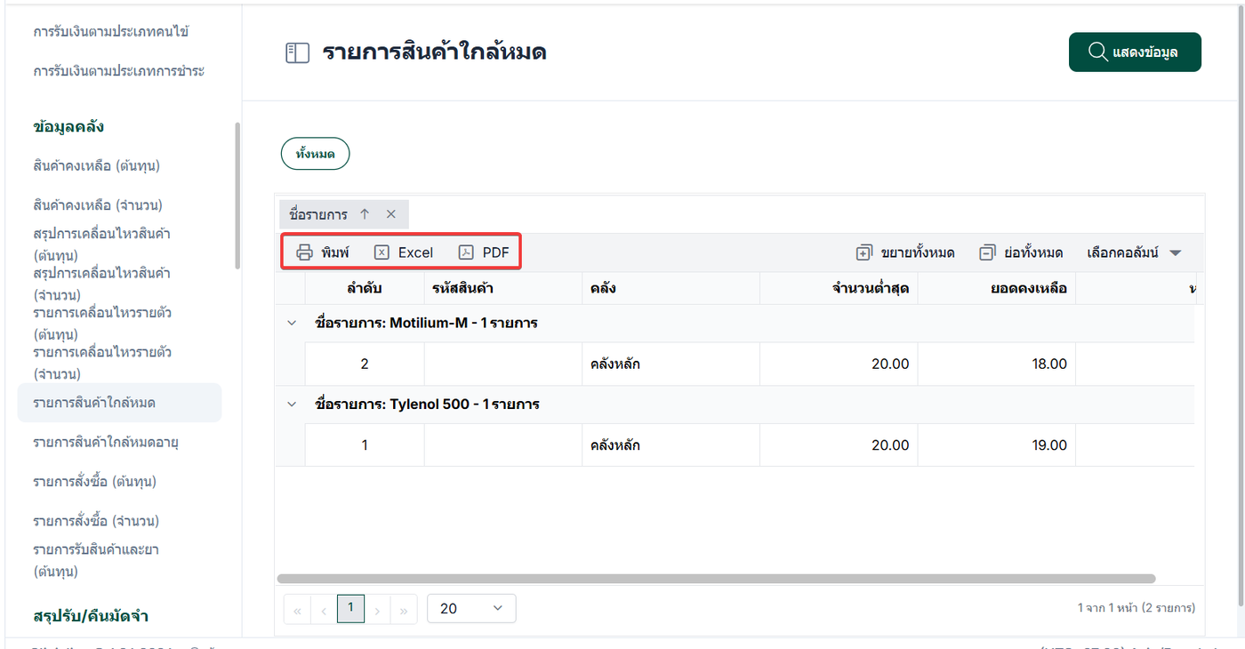 เลือก รายการสินค้าใกล้หมด