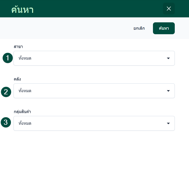 เมื่อกำหนดเงื่อนไขครบถ้วนแล้ว ผู้ใช้งานสามารถคลิก ค้นหา เพื่อแสดงผลรายงานตามข้อมูลที่เลือกไว้