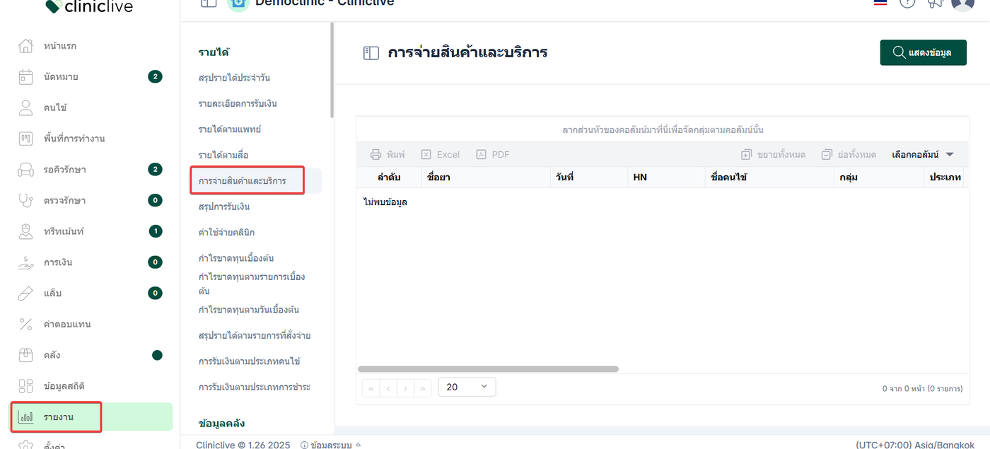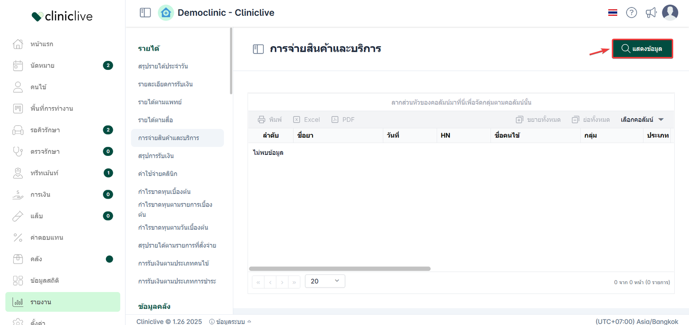 ไปที่เมนู รายงาน