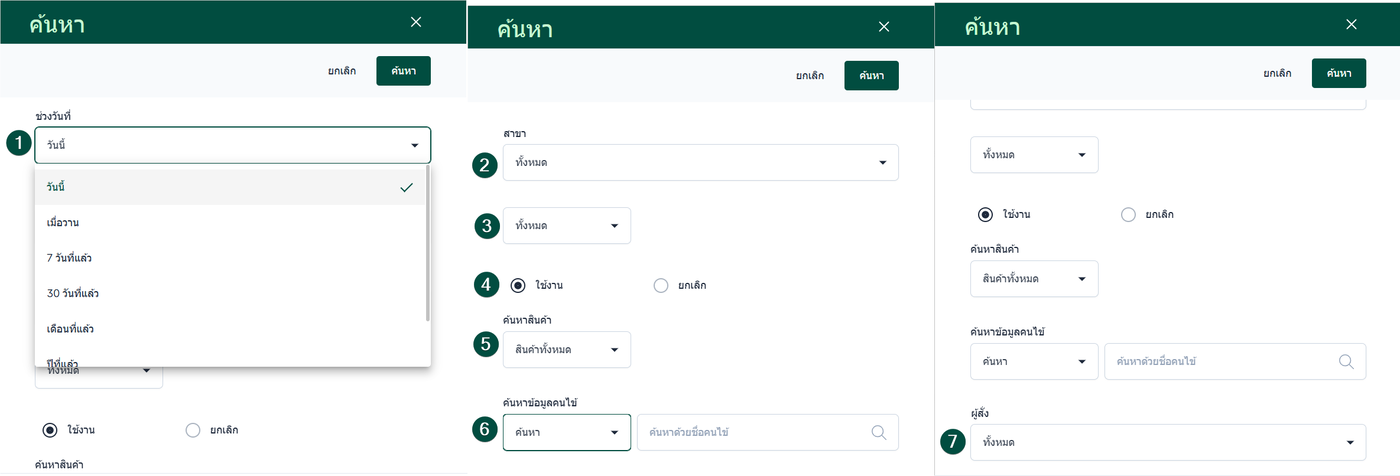 เลือกวันที่ ผู้ใช้งานสามารถเลือกช่วงวันที่ได้หลายรูปแบบ เช่น
