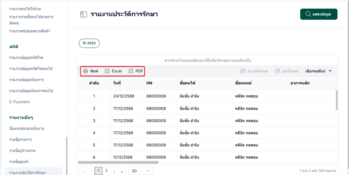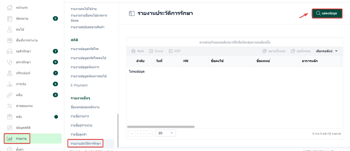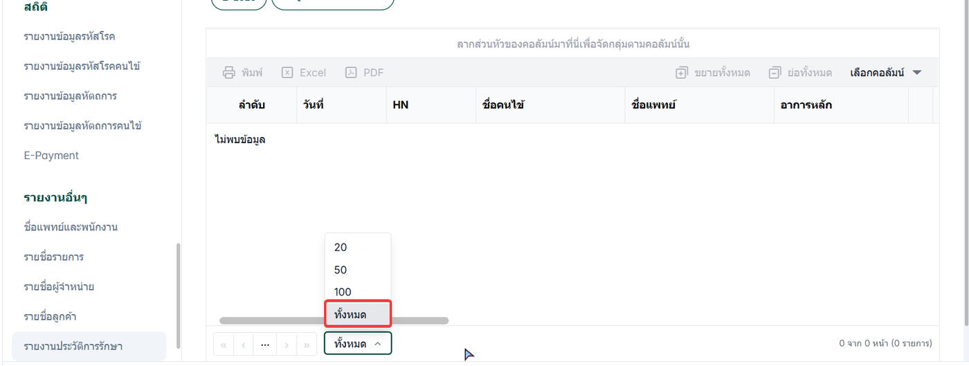 เลือก รายงานประวัติการรักษา