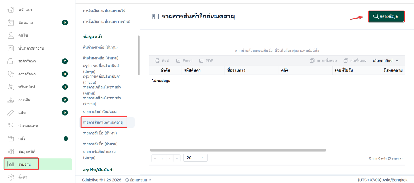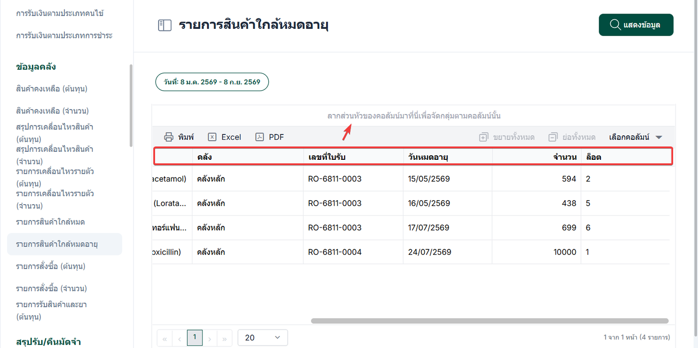 เลือก รายการสินค้าใกล้หมดอายุ