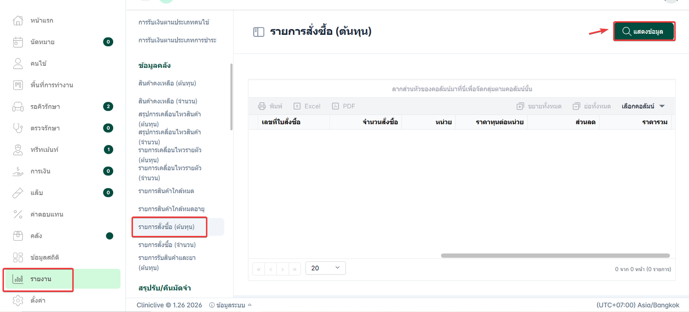 เลือก รายการสั่งซื้อ (ต้นทุน)