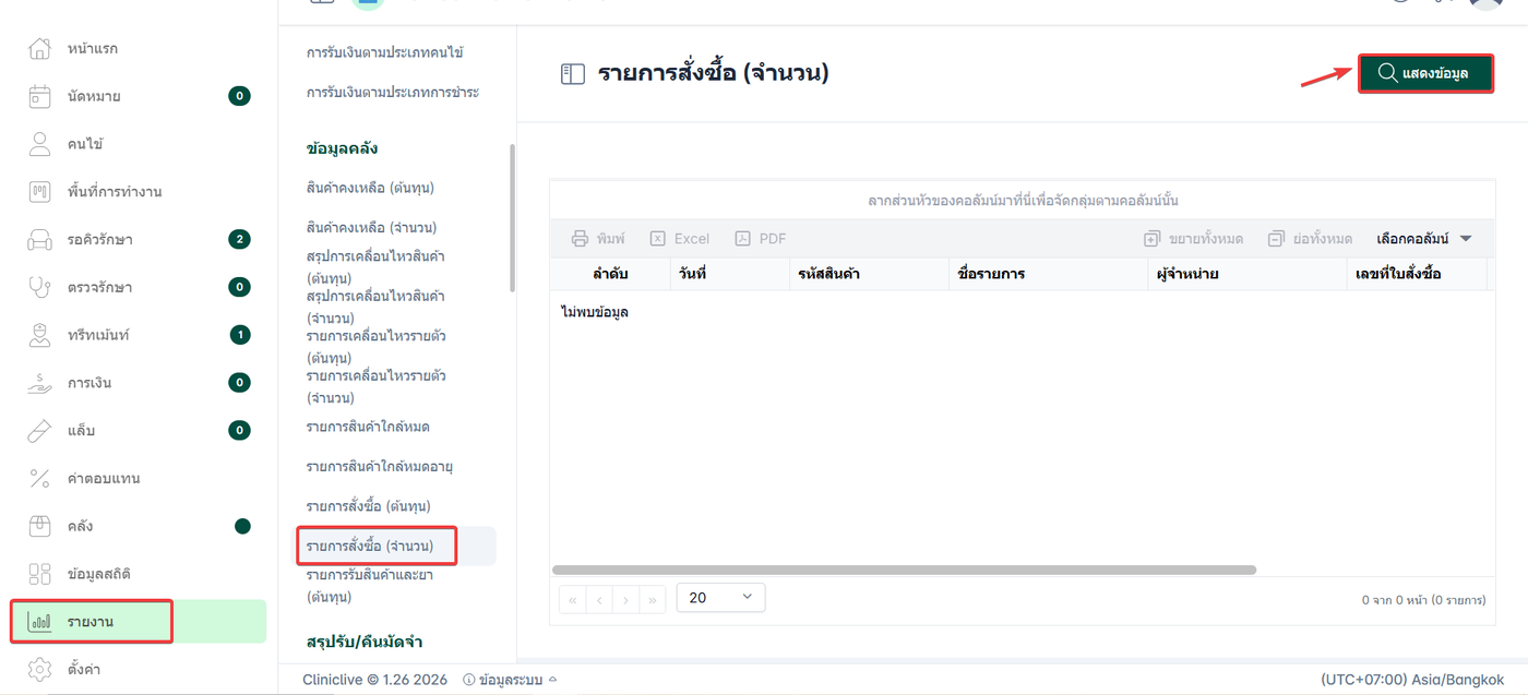 เมื่อกำหนดเงื่อนไขครบถ้วนแล้ว ผู้ใช้งานสามารถดำเนินการค้นหาเพื่อแสดงผลรายงานตามเงื่อนไขที่เลือก