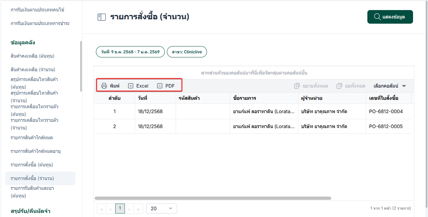 รายงานรายการสั่งซื้อแบ่งออกเป็น 2 ประเภท ได้แก่