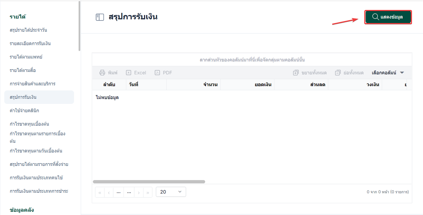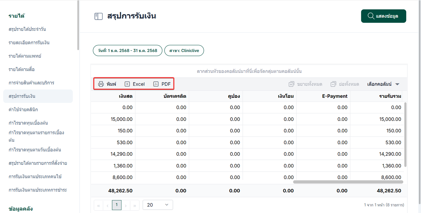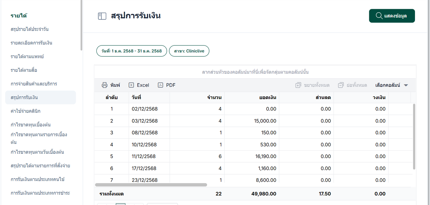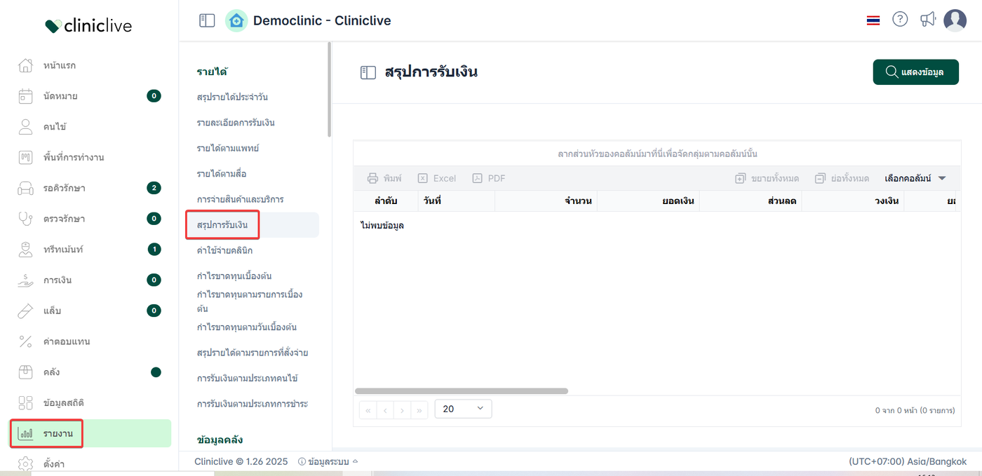 สรุปรายการรับเงินคือยอดเงินที่เราได้รับในแต่ละวันหากต้องการทราบสรุปรายงานการรับเงินทำตามขั้นตอนได้ดังนี้