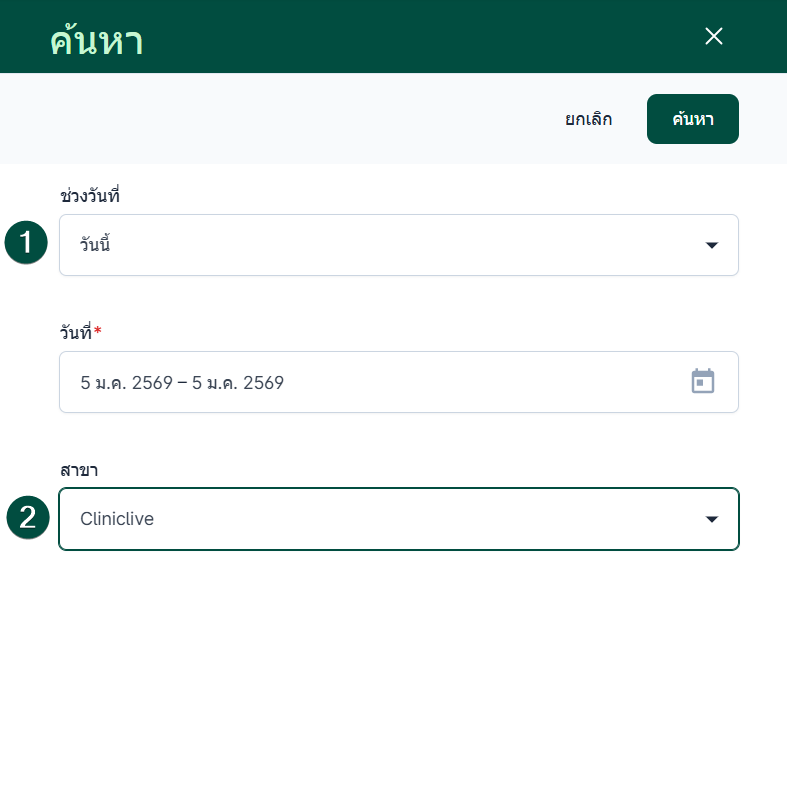 ผู้ใช้งานสามารถเลือกช่วงวันที่ได้หลายรูปแบบ เช่นวันนี้