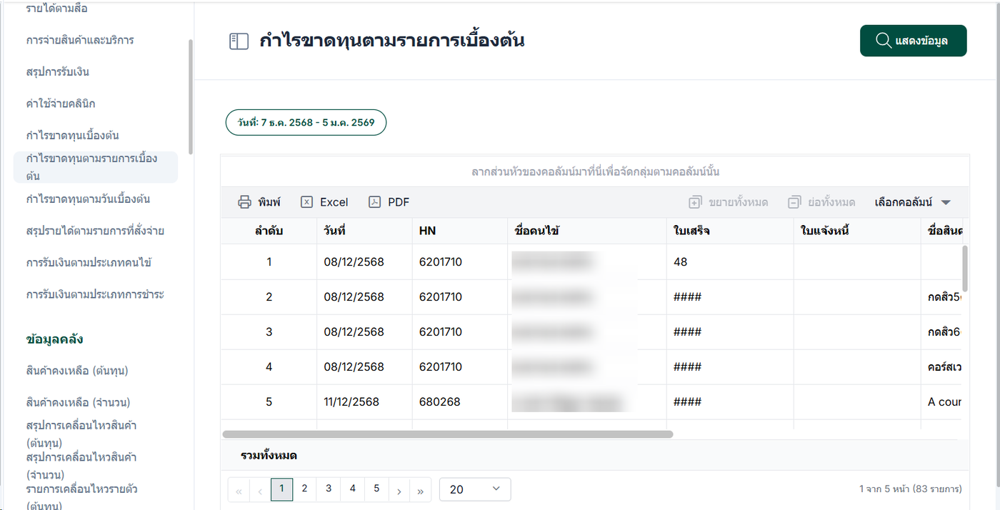 บันทึกรายงานเป็นไฟล์ Excel