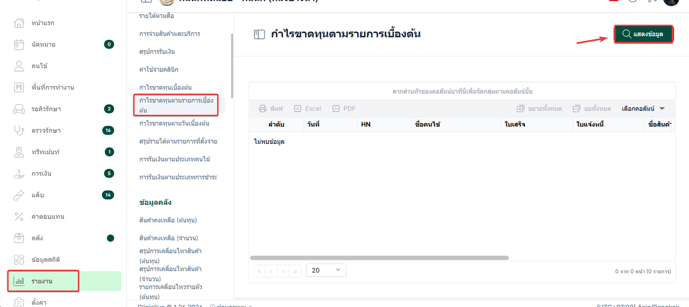 ไปที่เมนู รายงาน