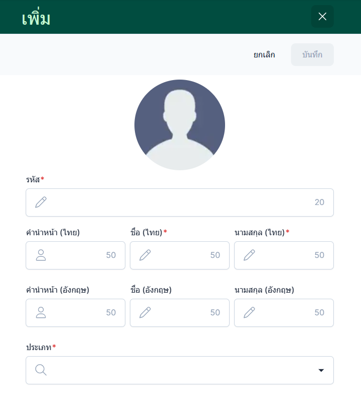 ข้อมูลที่มีสัญลักษณ์ * คือข้อมูลที่จำเป็นต้องกรอกเพื่อบันทึกข้อมูล