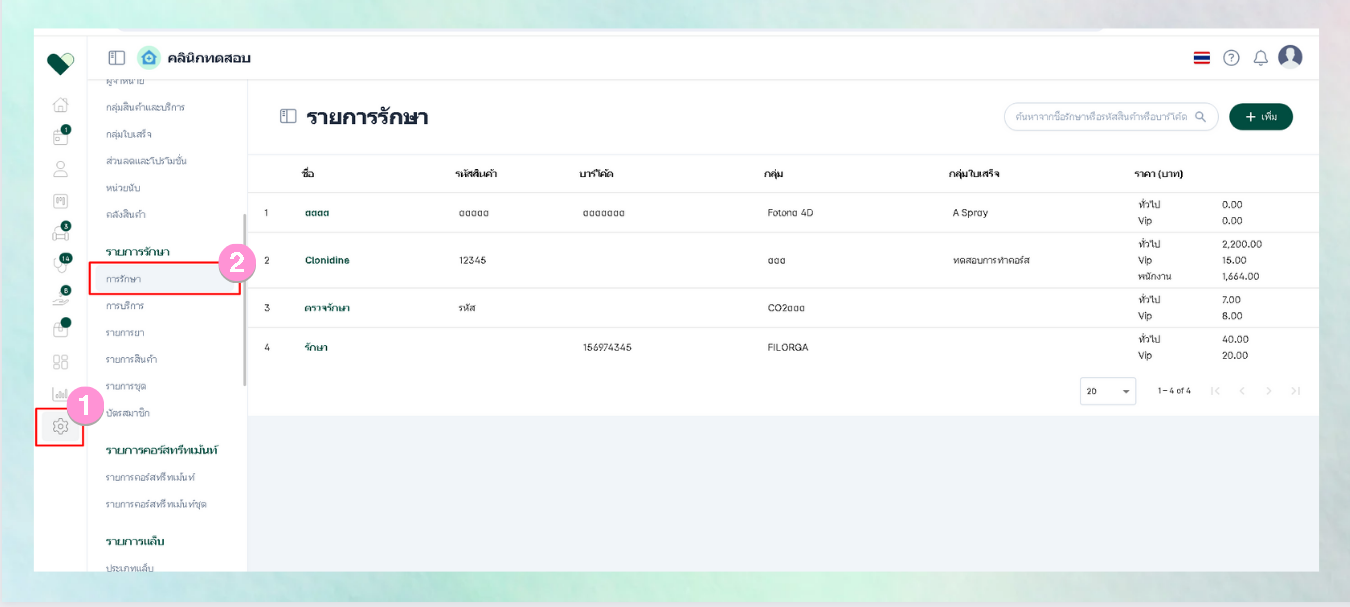 - เลือกหัวข้อรายการรักษา > การรักษา