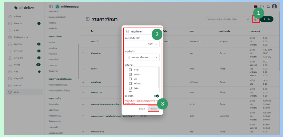 สามารถปรับราคารายการรักษาขึ้นได้ทุกรายการทีเดียวโดยคิดเป็น %