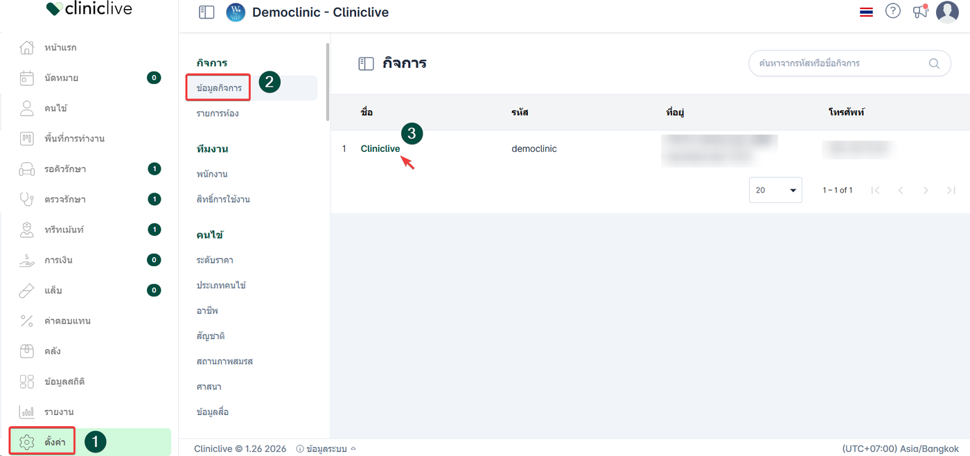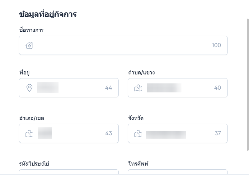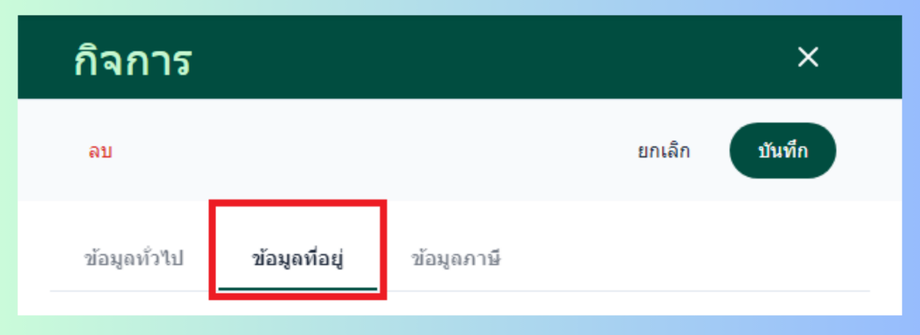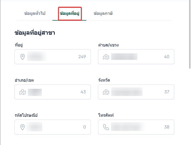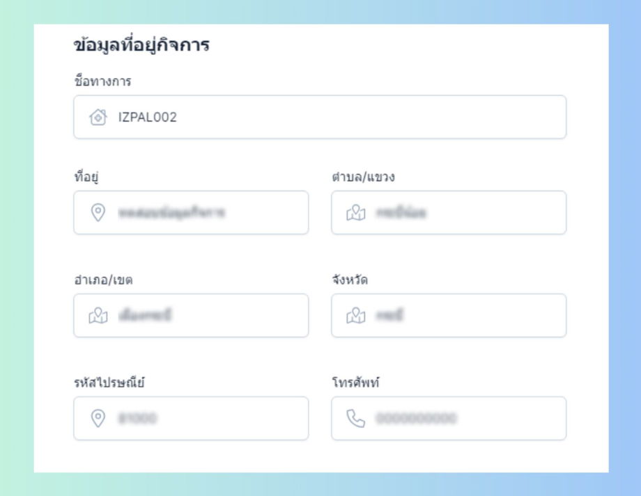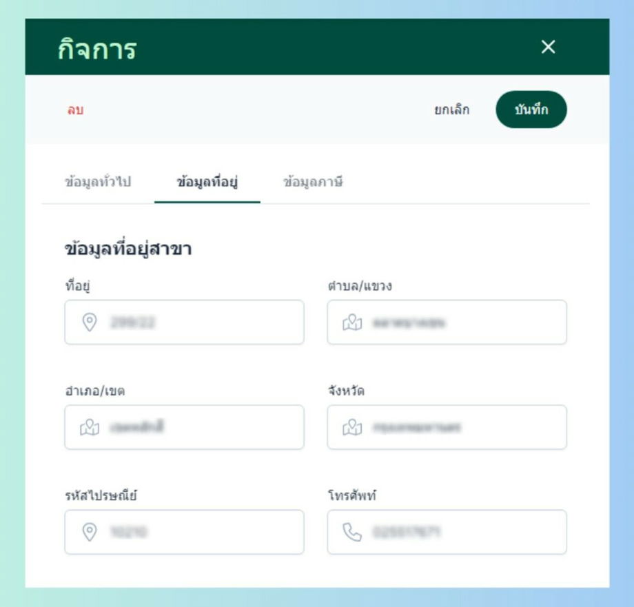 หน้าแสดงข้อมูลที่อยู่กิจการ