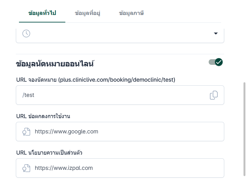 การตั้งค่าข้อมูลการนัดหมายออนไลน์