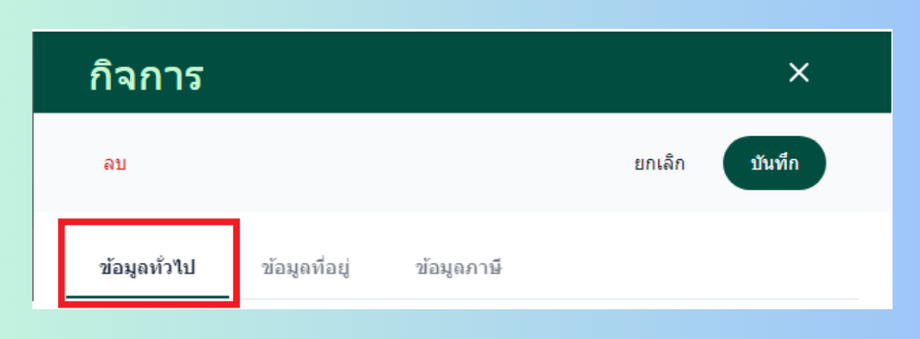 เมื่อเข้าหน้าการแก้ไขกิจการแล้วให้เลือกหัวข้อ "ข้อมูลทั่วไป"