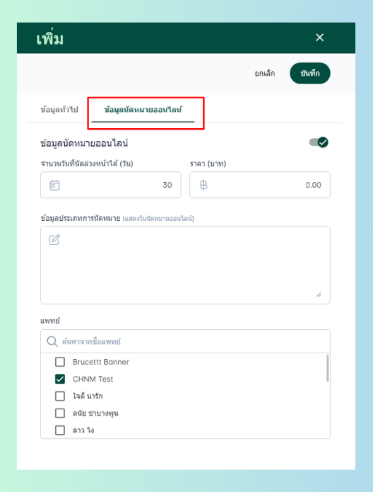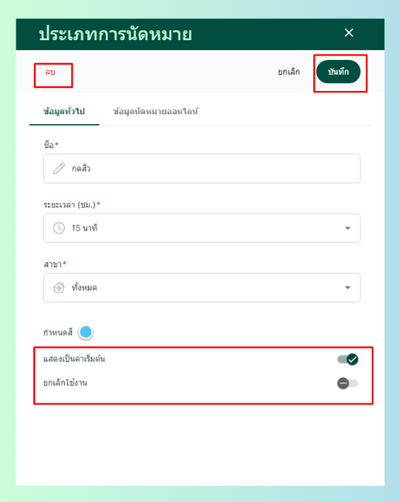 การตั้งค่าข้อมูลนัดหมายออนไลน์