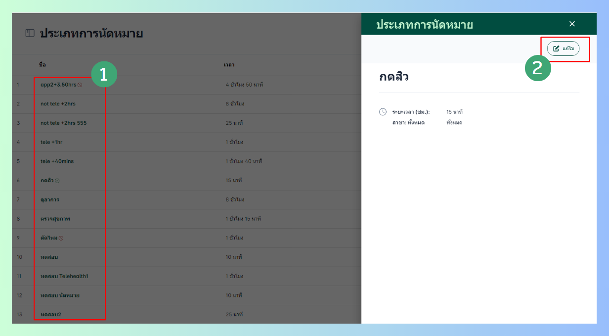 ข้อมูลประเภทการนัดหมาย รายละเอียดประเภทนัดหมาย