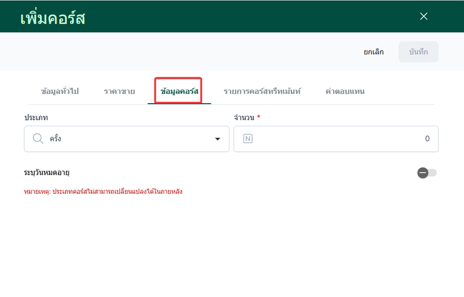 ข้อมูลคอร์ส กรอกข้อมูลให้เรียบร้อย