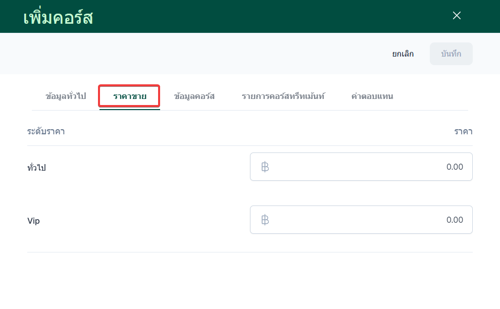 ข้อมูลราคา แบ่งราคาตามระดับและสามารถกำหนดราคาได้ กรอกข้อมูลให้เรียบร้อย