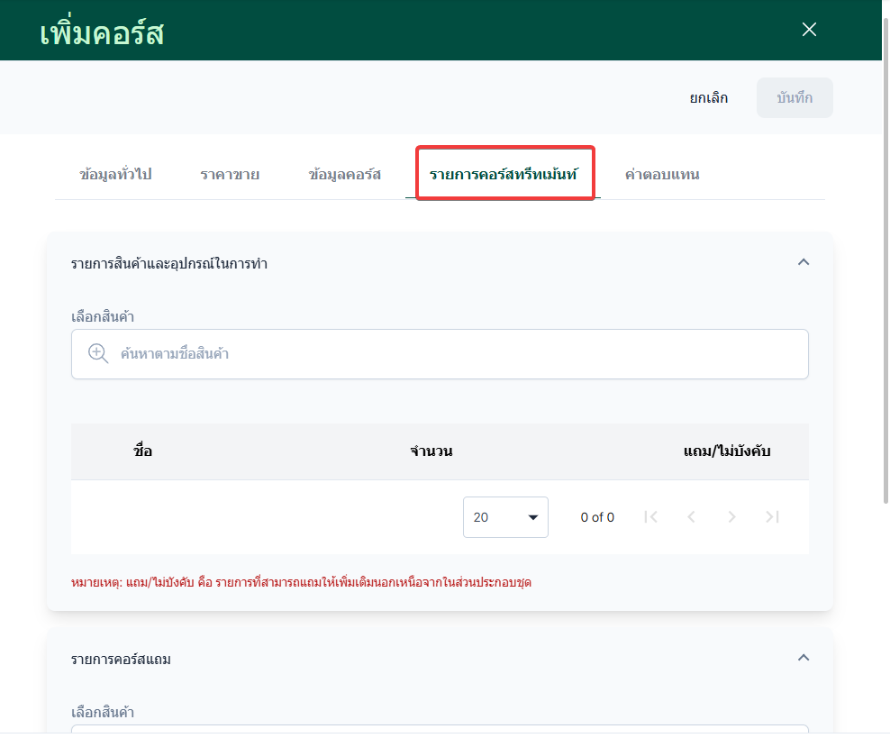 การเพิ่มรายการคอร์ส