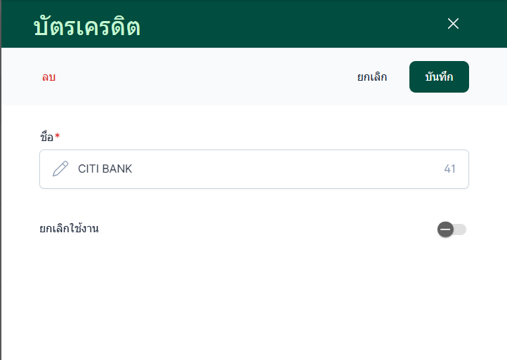 การยกเลิก : คือรายการจะยังอยู่ในระบบแต่แสดงสถานะยกเลิกเมื่อแก้ไขข้อมูลเสร็จแล้วกดบันทึก ระบบจะทำการบันทึกข้อมูล