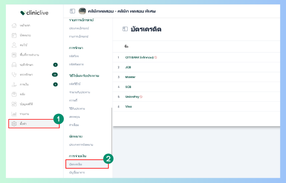 การตั้งค่าบัตรเครดิต