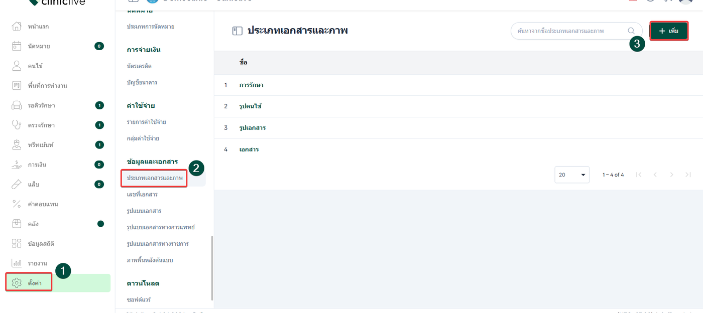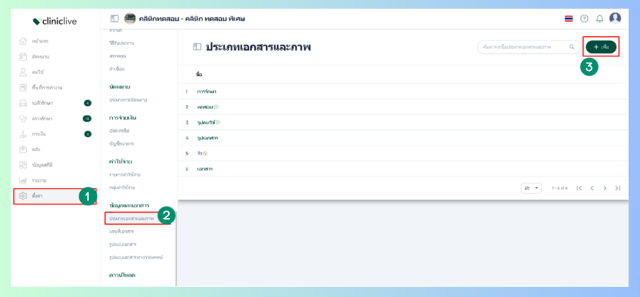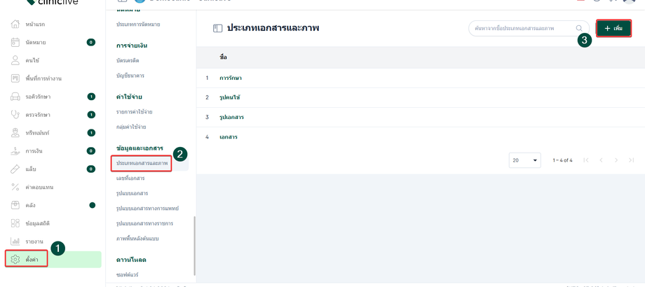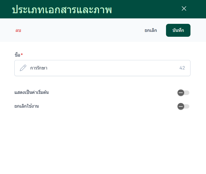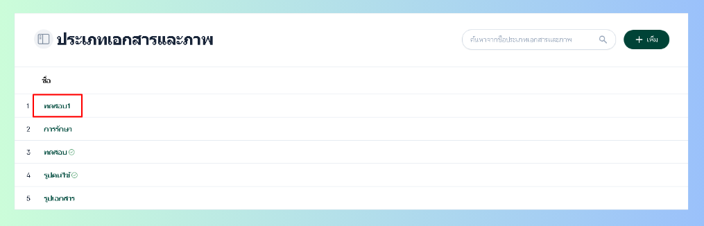 การตั้งค่าประเภทเอกสารและรูปภาพนั้น การตั้งค่าที่ส่งผลกับระบบบันทึกข้อมูล รูปภาพ หรือ ไฟล์เอกสาร ต่างๆ ที่ผู้ใช้งานอัพโหลดระบบจะจัดประเภทตามที่ผู้ใช้งานเลือกและตั้งค่า