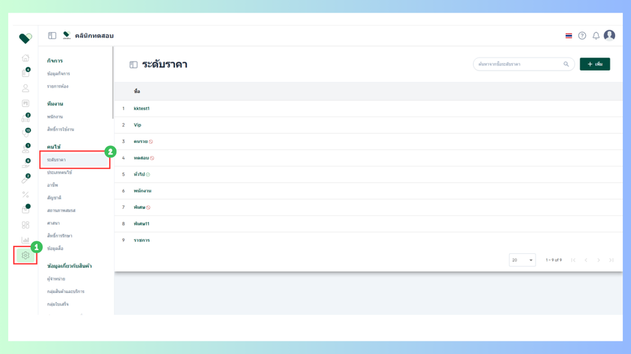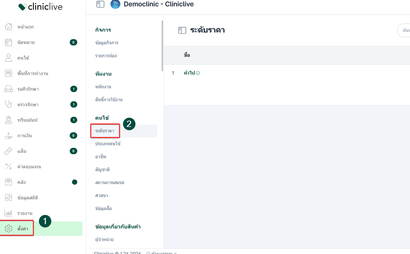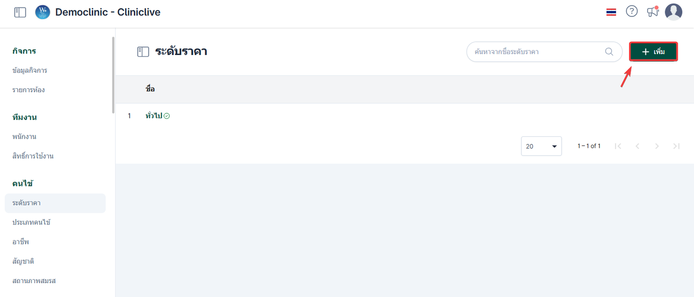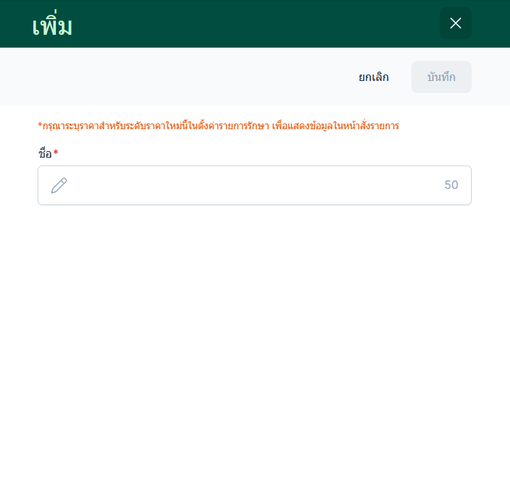 ในการตั้งค่าส่วนนี้ไม่ใช่การตั้งค่า ราคา เป็นการตั้งค่าประเภทระดับราคาเพื่อบันทึกข้อมูลของคนไข้เท่านั้น