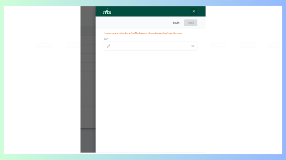 ข้อมูลที่มีสัญลักษณ์ * คือข้อมูลที่จำเป็นต้องกรอกเพื่อบันทึกข้อมูล