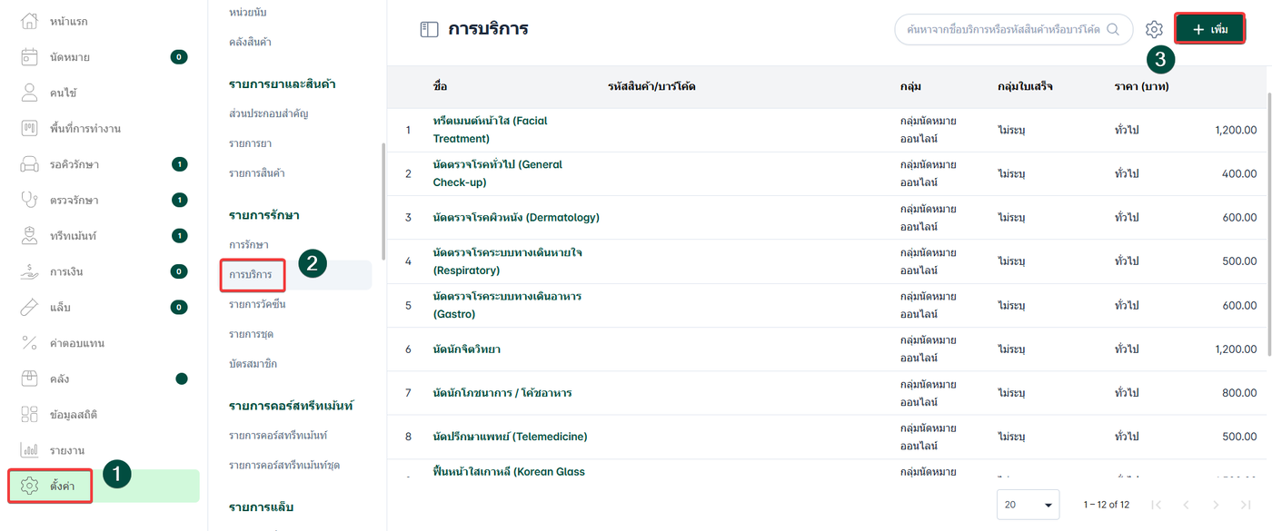 เมื่อเข้าสู่หน้าการบริการ ให้คลิกที่ปุ่ม +เพิ่ม