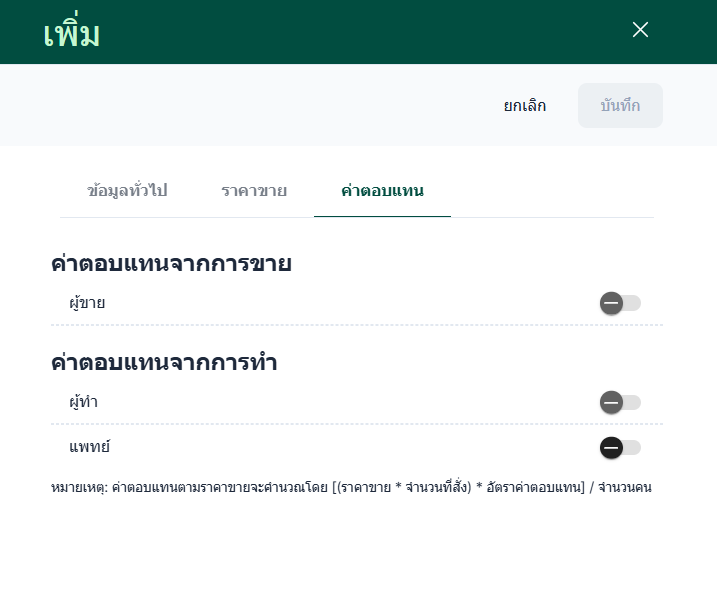ระบุค่าตอบแทน เลือกให้ค่าตอบแทนเป็นเปอร์เซ็นต์ หรือครั้งละกี่บาท ระบุจำนวนเปอร์เซ็นต์หรือระบุจำนวนเงิน และสามารถให้ค่าตอบแทนได้มากกว่า 1 คน หากเลือกให้ได้มากกว่า 1 คน ต้องเลือกว่าจะจ่ายค่าตอบแทนเป็นแบบแบ่งเฉลี่ยตามบุคคล หรือแบ่งเป็นรายบุคคล