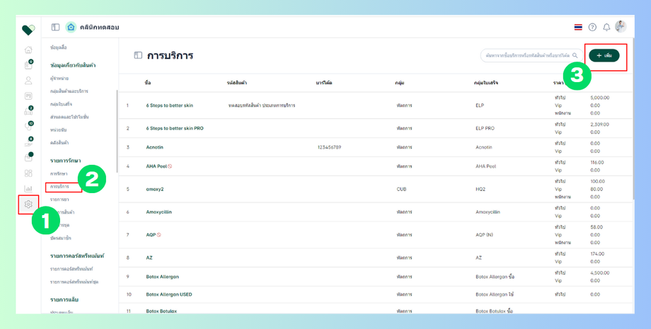 การเพิ่มรายการบริการ