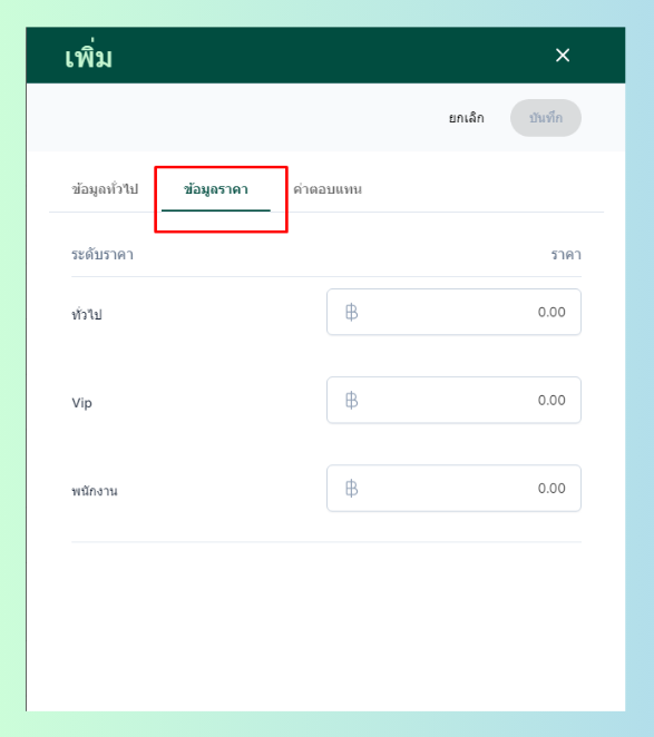 - ระบุข้อมูลราคา