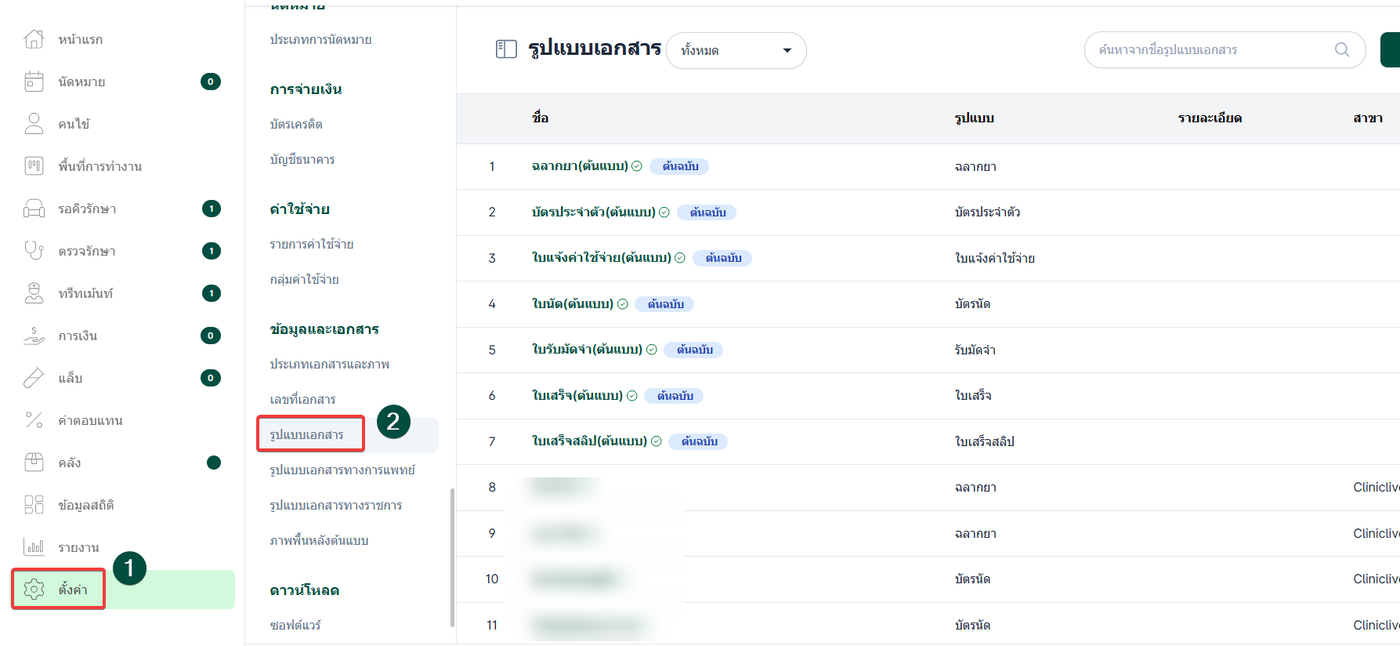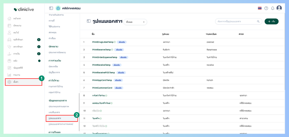 การจัดการรูปแบบเอกสารเป็นส่วนการออกแบบเอกสารต่างๆมีผลในส่วนการใช้งานที่เป็นเอกสารที่พิมพ์จากโปรแกรม จะสามารถแก้ไขรูปแบบเอกสาร เพิ่มหรือลบเอกสารที่ไม่ได้ใช้งานได้ เอกสารที่อยู่ในรูปแบบเอกสารประกอบไปด้วย บัตรนัด ฉลากยา ใบรับมัดจำ ใบเสร็จ ใบเสร็จสลีป บัตรประจำตัว ใบแจ้งค่าใช้จ่าย