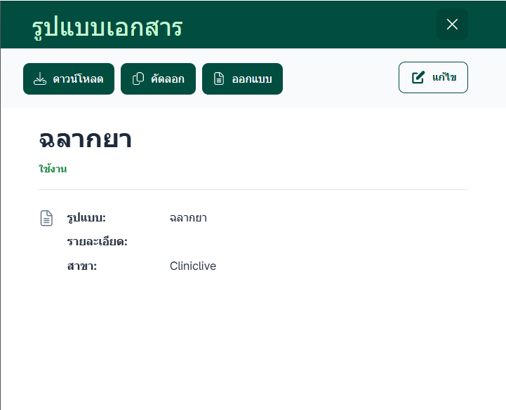เมื่อคลิกที่เอกสารแล้ว จะสามารถดาวน์โหลดเอกสาร คัดลอกเอกสาร ออกแบบเอกสาร และแก้ไข
