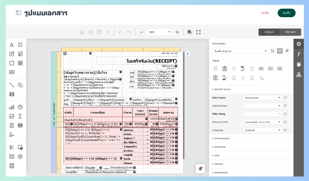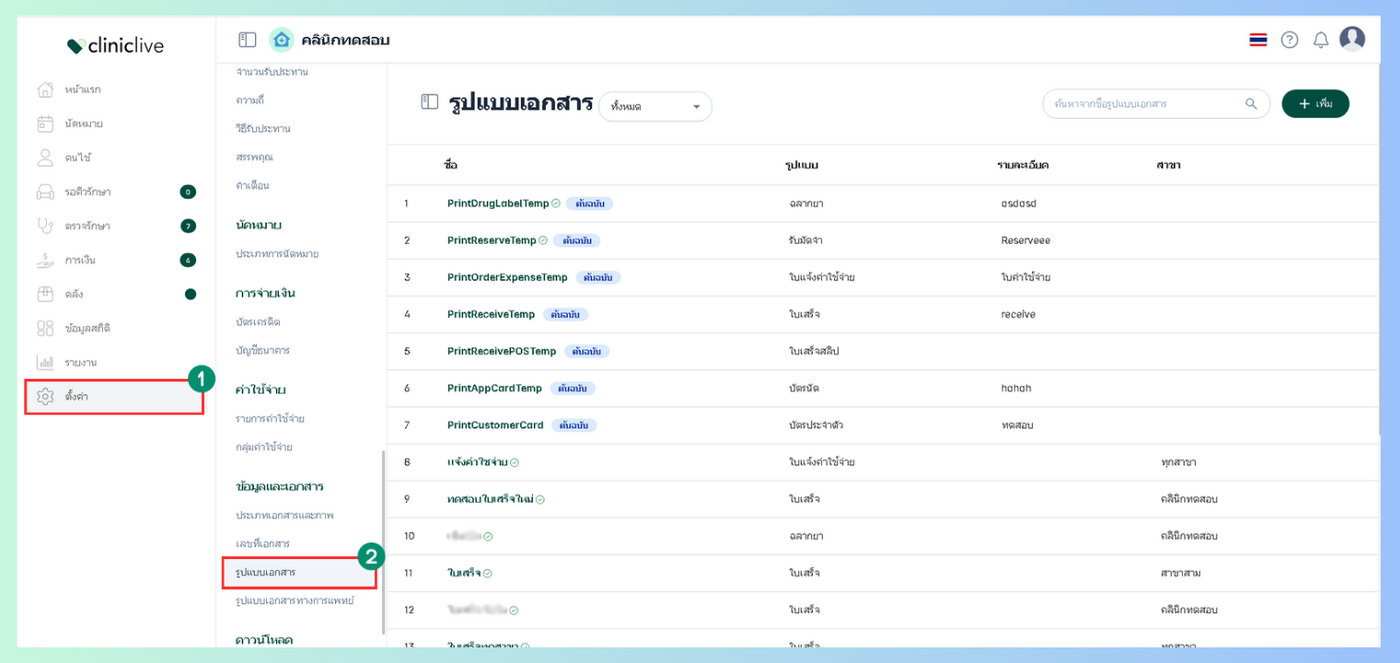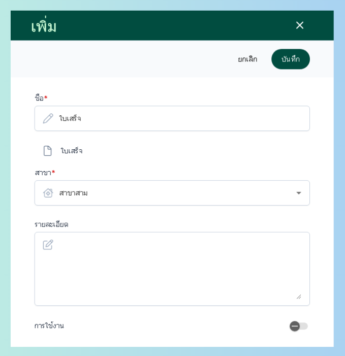 - การใช้งาน : เปิด/ปิด การใช้งานถ้าผู้ใช้ไม่เปิดการใช้งานให้เป็นสีเขียวจะไม่มาสามารถพิมพ์เอกสารนั้นได้