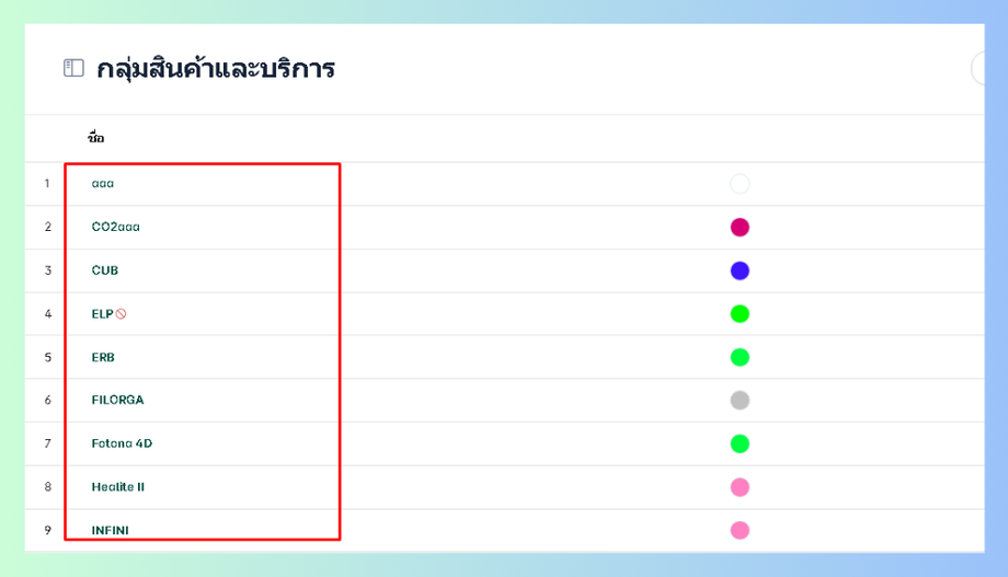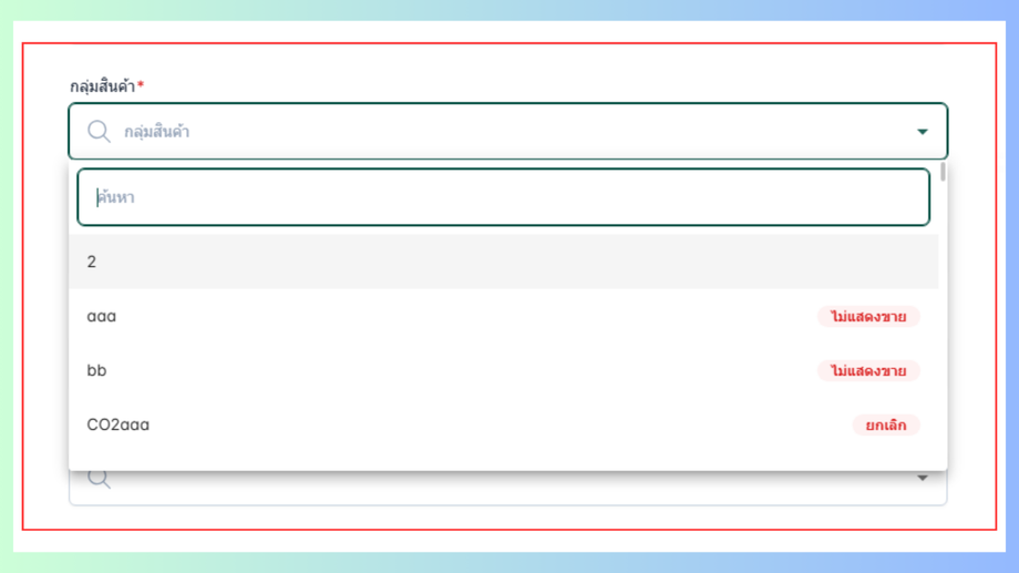 ระบบจะแสดงรายการกลุ่มในการเลือกในสินค้า หรือ บริการ