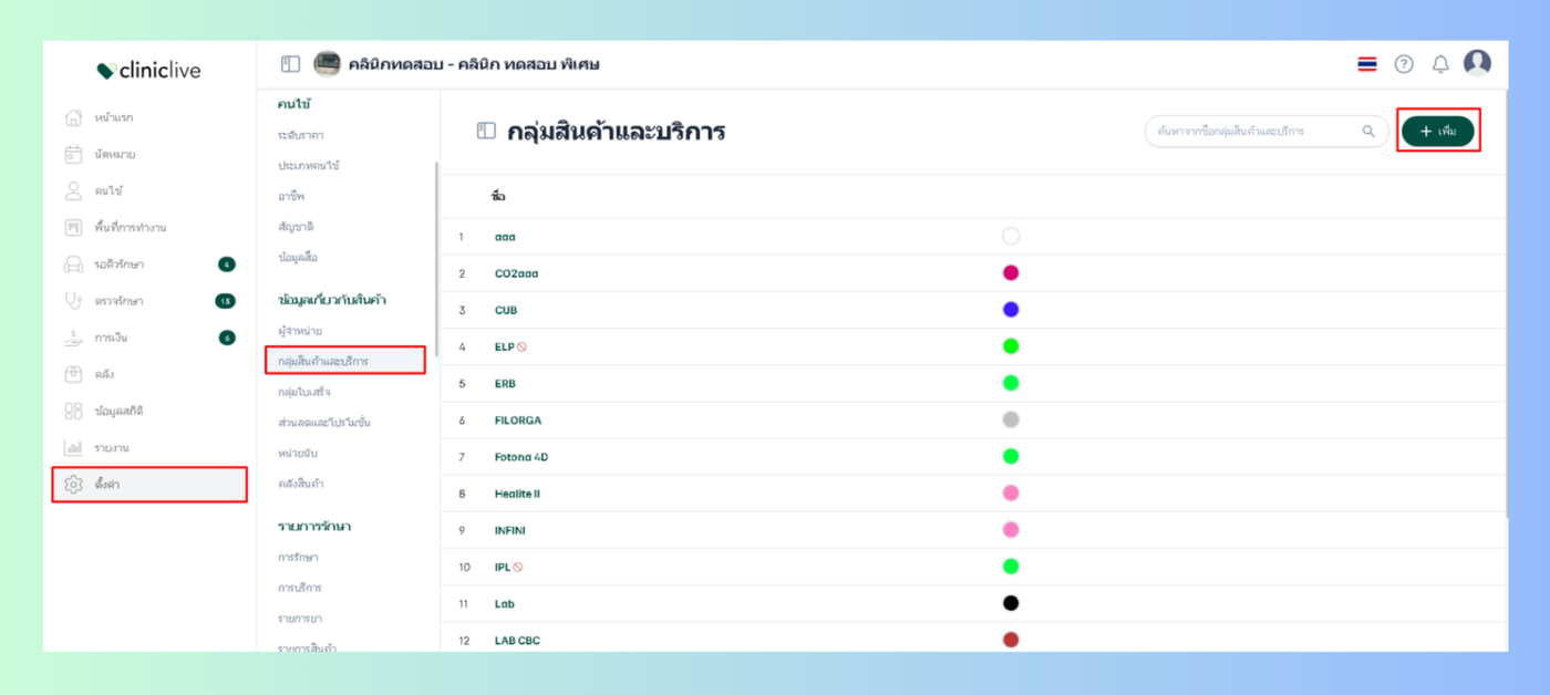 เพิ่มกลุ่มสินค้าและบริการ