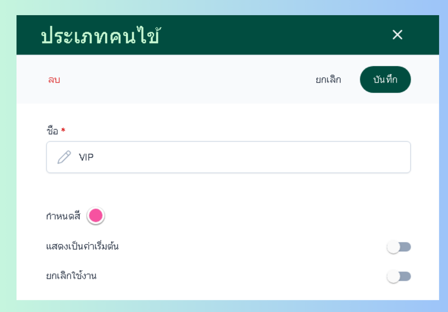 คือ การแบ่งประเภทคนไข้ออกเพื่อแบ่งกลุ่มคนไข้ การตั้งค่าข้อมูลประเภทจะแสดงการเลือกประเภทในขั้นตอนการเพิ่มคนไข้แก้ไขข้อมูลคนไข้