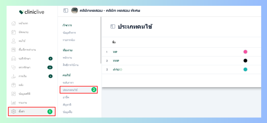 เลือกหัวข้อคนไข้ > ประเภทคนไข้