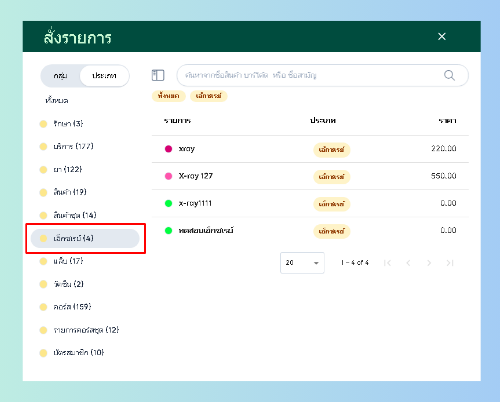 เมื่อผู้ใช้งานทำการค้นหาระบบจะแสดงสินค้าจากรายการสินค้าที่ผู้ใช้งานทำการเพิ่มไว้ใน การตั้งค่ารายการสินค้า