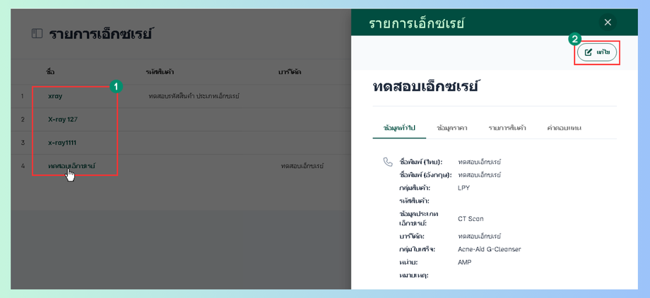 ผู้ใช้งานจะเข้าถึงหน้าแก้ไขข้อมูล รายการเอ็กซเรย์