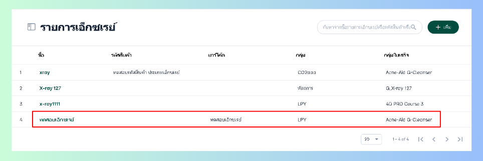 เลือกเมนูรายการเอ็กซเรย์>รายการเอ็กซเรย์