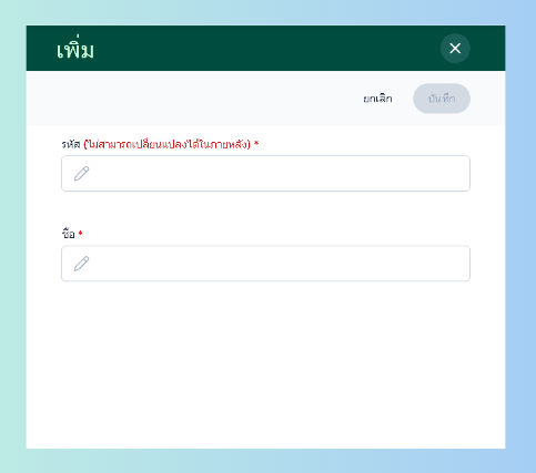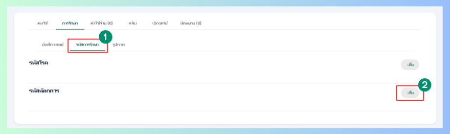 เมื่อผู้ใช้อยู่ในหน้ารหัสหัคถการคลิก +เพิ่มที่มุมขวาบน