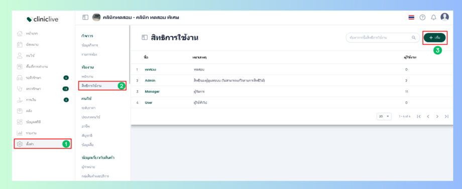 การตั้งค่า เป็นการกำหนดสิทธิ์ให้ผู้ใช้งานสามารถใช้งานหน้าตั้งค่าได้