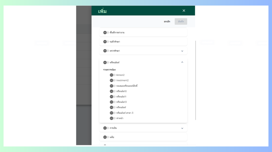 ทรีทเม้นท์ เป็นการกำหนดสิทธิ์ให้ผู้ใช้งานสามารถใช้งานหน้าทรีทเม้นท์ ได้